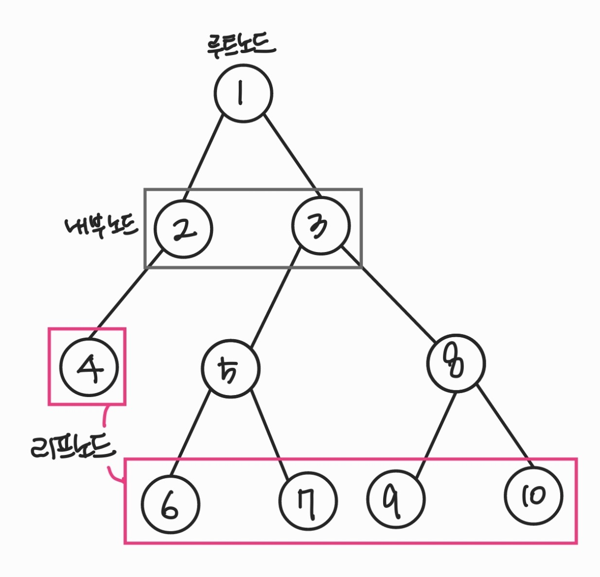 - 5번 노드는 6번 노드와 7번 노드의 부모 노드이고, 6번 노드와 7번 노드는 5번 노드의 자식 노드이다.
